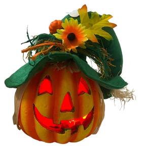 Abóbora Espantalho De Chapéu Com Luz E Som Halloween