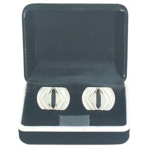 Estas abotoaduras prateadas farão você parecer absolutamente distinto em qualquer atmosfera. Compre um clipe de gravata e um par de abotoaduras e você terá uma caixa .