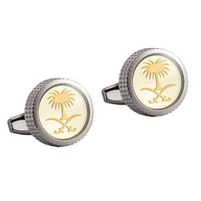 Material: cobre Tamanho: 17,8 mm × 17,8 mm Peso: 21 g Design distinto: apresenta um emblema icônico da Arábia Saudita com uma palmeira e espadas cruzadas, simbolizando força e herança, aprimorado com um acabamento dourado e prateado. Material de alta qualidade: feitas de cobre durável com acabamento polido, essas abotoaduras oferecem elegância e desgaste duradouro. Estilo versátil: ideais para eventos formais, reuniões de negócios ou qualquer ocasião que exija um toque elegante, essas abotoaduras complementam perfeitamente as camisas francesas. Ajuste seguro e confortável: projetado com uma barra em T, garantindo um ajuste seguro e confortável durante todo o dia. Elegância atemporal: um acessório sofisticado para homens que apreciam o estilo refinado e o simbolismo cultural, perfeito para dar um toque distinto a qualquer roupa.