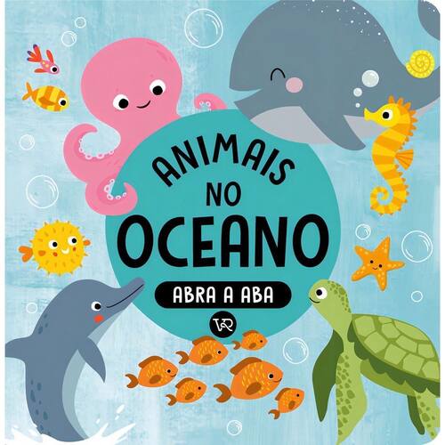 Livro de abas com cenas de animais do oceano para ler e brincar.