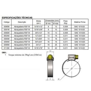 As abraçadeiras de rosca sem fim foram desenvolvidas para a maioria das utilizações industriais e instruídas para cobrir uma ampla variação de diâmetros, podendo com isto, compensar variações de diâmetros dos bocais e mangueiras.
