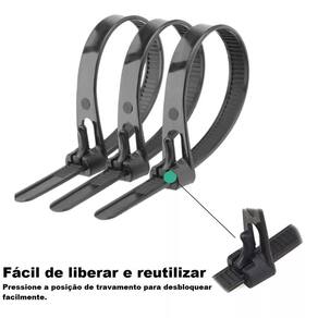 Abraçadeira Cinta Plastica Reutilizavel 7,6 X 150mm 50 Pçs A cinta abraçadeira média, popularmente conhecida como abraçadeira, possui um comprimento de 7,6x150mm e é feita de nylon 6.6 A205F , o que garante uma boa resistência mecânica. Reutilizável: - Abraçadeiras de plástico removíveis Adota um design de fivela do tipo solto, o que resolve o problema de que as abraçadeiras comuns só podem ser usadas uma vez. Como usar: - Basta pressionar o nó corrediço. As braçadeiras de zíper abrem e fecham fácil e rapidamente para que você possa adicionar ou remover cabos. Quantidade Embalagem: - 50 Abraçadeiras de Nylon Reforçada Reutilizável Cinquenta Peças Material: - Nylon 66 Medidas: - 7,6mm x 150mm Cor: - Preto Abraçadeiras multiuso: - As braçadeiras de plástico podem ser usadas para prender cabos de internet, cabos de computador, cabos USB móveis, cabos de guitarra, cabos de TV, cabos de extensão, cabos externos e muito mais. - As braçadeiras de plástico podem ser usadas para pendurar, segurar, prender, selar e amarrar praticamente qualquer coisa, tornando-as ideais para todas as coisas de primavera que você deseja cuidar. - As braçadeiras de plástico também são perfeitas para uso em jardinagem, para prender acessórios de bicicleta, para prender coisas ao seu equipamento, como uma garrafa ou lanterna, para servir como zíper de pano ou bolsa, para consertar cercas, para prender luzes à sua pérgola externa, etc. - Ideal para prender Fios, Cabos e Mangueiras - Fixação de Chicotes e Lacre de Embalagens - Cabos de Rede