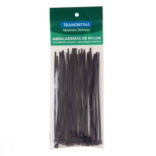 Com a Abraçadeira de Nylon 283x4,8x1,5 mm Tramontina Preta você terá maior praticidade para organizar os fios e cabos do seu ambiente. Ela é muito flexível e por ser produzida em nylon antichama, ainda garante alta resistência e durabilidade. A escolha perfeita para fazer parte dos seus itens de manutenção! Orientações . Características Gerais EAN13 7891435026030 DUN14 17891435026037 NCM 3926.90.90 Peso Líquido 0,2100 kg. Peso Bruto 0,2200 kg. Metragem 0,000001 m³. Dimensões Embalagem (Compr. X Larg. X Alt.) 283x 5x 2 mm. Dimensões Produto (Compr. X Larg. X Alt.) 283x 5x 2 mm. Cor 1 000000 Hexa Observações .