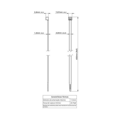 Abraçadeira De Nylon 398x4,8x1,5 Mm Tramontina Branca Abraçadeira de Nylon 400x4,8x1,5 mm Tramontina Branca Com a Abraçadeira de Nylon 400x4,8x1,5 mm Tramontina Branca você terá maior praticidade para organizar os fios e cabos do seu ambiente. Ela é muito flexível e por ser produzida em nylon antichama, ainda garante alta resistência e durabilidade. A escolha perfeita para fazer parte dos seus itens de manutenção!