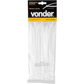 Aplicação: Indicada para fixar e organizar fios, cabos, entre outros. Também conhecida no mercado como: enforca gato, fita de nylon e abraçadeira plástica. A abraçadeira VONDER é indicada para uso interno e externo.