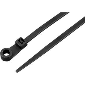 Aplicação: Indicada para fixar e organizar fios, cabos, entre outros. Permite a fixação da abraçadeira em superfícies diversas utilizando parafusos. Também conhecida no mercado como: enforca gato, fita de nylon e abraçadeira plástica.