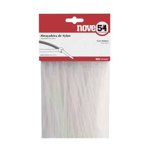 Indicada para fixar e organizar fios, cabos, entre outros. Características do produto: - marca: nove54; - também conhecida no mercado como: abraçadeira, fita de nylon e abraçadeira plástica; - produzida em nylon 6.6 que proporciona maior resistência à tração. - conta com proteção uv que garante maior vida útil; - cor da abraçadeira: branca; - tensão de ruptura: 8,0 kgf kgf; - : 3 meses. Dimensões do produto: - largura da abraçadeira de nylon l : 2,5 mm; - comprimento total da abraçadeira de nylon c : 100 mm; - espessura da abraçadeira e : 1,0 mm; - diâmetro máximo de amarração d : 22 mm.Imagens meramente ilustrativas, os objetos que ambientam as imagens não acompanham o produto