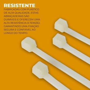 - Super flexíveis e resistentes ideais para organização e amarração de fios cabos entre outros materiais; - Pode ser moldada através do aquecimento sem apresentar decomposição química ou outras alterações em suas propriedades; - Alta resistência à tração, com elevada resistência mecânica e com a flexibilidade e dureza superficial desejáveis; - Ela é muito flexível e por ser produzida em nylon anti-chama, ainda garante alta resistência e durabilidade.