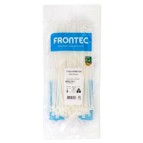 ABRAÇADEIRA NYLON 3,7 X 300MM BRANCA FRONTEC 100 UN