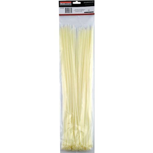 Abraçadeira fabricada em nylon resistente com acabamento na cor branca. Indicado para o uso doméstico e industrial, para a fixação diversa em cabos elétricos, veículos, bicicletas, etc. Abraçadeira Branca de Nylon. Tamanho: 300MM de Comprimento e 4,8 de Largura. Saco com 100 Unidades. Indicado para Prender e Unir partes ou Peças. Embalagem: Saco Plastico com Testeira. Composição: Nylon 66