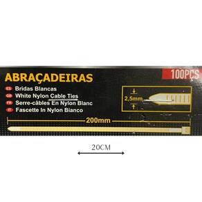 Abraçadeira nylon enforca 2,5 x 200mm kit com 100 cinta plástica fixadora fita hellerman 20cm branca