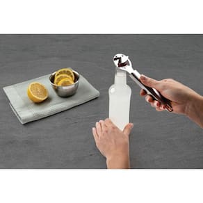 Uso 2 em 1: abre garrafas e latas, trazendo mais praticidade à cozinha.
