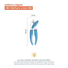 ":: Esse é o abridor de latas da OIKOS, aquele parceiro que protege contra acidentes ao abrir latas e garrafas. :: Abre latas: basta encaixar o abridor na beirada, apertar e girar a manivela. :: Sem rebarbas: por abrir latas uniformemente, gera uma borda bem lisa - sem aquelas rebarbas pontudas que machucam, sabe? :: Abre garrafas: é só encaixar na garrafa a ponta que fica ao lado do furo passante, abrir e brindar. :: Ergonômico: seu suporte tem um toque suave que encaixa confortavelmente em qualquer mão."