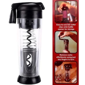 Descrição: A ação TWIST-AND-PULL nunca quebra a rolha. A alça dobra para baixo para armazenamento. Gire no sentido horário para remover a rolha da garrafa de vinho. Gire no sentido anti-horário para liberar a cortiça para descarte. Uma nova maneira de abrir uma garrafa de vinho sem esforç ERGONÔMICO DURÁVEL COMPACTO. Abridor de vinho com design elegante e engrenagem epicíclica para operação simples e sem esforço. Funciona bem para pessoas com dores nas articulações e artrite. Sinta o conforto na mão em comparação com os abridores de saca-rolhas FÁCIL DE OPERAR. Abre garrafas de vinho com menos força do que o necessário para abridores de vinho típicos e requer apenas dois dedos para girar a maç PRESENTE PARA OS AMANTES DE VINHO. Seu deve ter acessórios de vinho. Pequeno e leve. Vem com cortador de folha clip-in. Saca-rolhas fechado. Bom para viagens, festas, piquenique e presentes. O Smart Touch Wine Opener remove rolhas sem esforço usando apenas dois dedos. Seu cortador de papel alumínio fácil de usar se encaixa no abridor de garrafas para armazenamento. Característica:Puxa a rolha de vinho enquanto você torceEngrenagem epicíclica elegantemente projetada para operação simples e sem esforçoAbre garrafas de vinho com 75% menos força do que o necessário para abridores de vinho típicos e requer apenas dois dedos para girarA ação de torcer e puxar nunca quebra a rolhaVem com cortador de papel alumínioA alça dobra para baixo para armazenamentoPequeno e leve Saca Conteúdo da caixa1 x Twist n Pull smart touchImpressione os convidados da sua festa com o abridor de vinho fácil e elegante Twist 'N Pull Smart Touch. Este abridor leve é projetado para fornecer abertura simples para entretenimento sofisticado. Basta segurar e girar - este abridor fácil abre garrafas de vinho com 85% menos força necessária para abridores típicos. Você só precisa de dois dedos para girar! Chega de se preocupar com rolhas quebradas - abra suas garrafas de vinho como um com o abridor de garrafas de vinho Twist 'N Pull Smart Touch Easy Touch.Características:Puxa a rolha de vinho ao girar a maçanetaA alça dobra para baixo para armazenamentoClipes de cortador de papel alumínio fáceis de usar no abridor de garrafas para armazenamentoAbre garrafas com aprox. 85% menos força do que abridores típicosA ação de torcer e puxar nunca quebra a rolhaPequeno e leveSaca-rolhas fechado