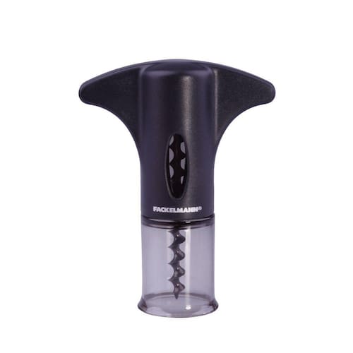 Saca rolhas modelo borboleta, seu corpo é fabricado em plástico e o espiral em metal. A parte superior possui um corta lacre que auxilia na abertura da garrafa.