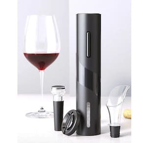 Abridor de vinho elétrico automático com 4 peças: abridor, corta-lacre, bico aerador e tampa a vácuo. Fabricado em aço inoxidável com design moderno e elegante. Compacto e fácil de usar.Vendido e entregue por Olist