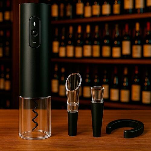 Abridor de vinho elétrico com cortador de folha e rolha a vácuo. Remove rolhas em 5 a 7 segundos, mantendo-as intactas. Possui superfície lisa, tamanho portátil e baixo ruído. A rolha a vácuo mantém a garrafa fresca por 7 dias.Vendido e entregue por Olist