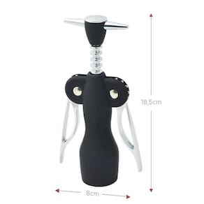 Abridor de Vinho Saca Rolhas Aço Abre Fácil Preto Fosco Abridor de vinho prático, abra de maneira fácil e rápida suas garrafas de vinho, basta encaixar o abridor por cima da rolha e rosquear, após isso pressione as alavancas laterais para baixo e pronto Possui mecanismo confeccionado em metal que dá uma maior resistência e via útil. PRINCIPAIS DESTAQUES - Mecanismo em metal- Acabamento fosco de textura emborrachada- Remove a rolha de maneira fácil e sem esforço- Compatível com todas as garrafas de vinho- Dimensões: 6,5 x 18,5 x 6,5 cm largura x altura x profundidade