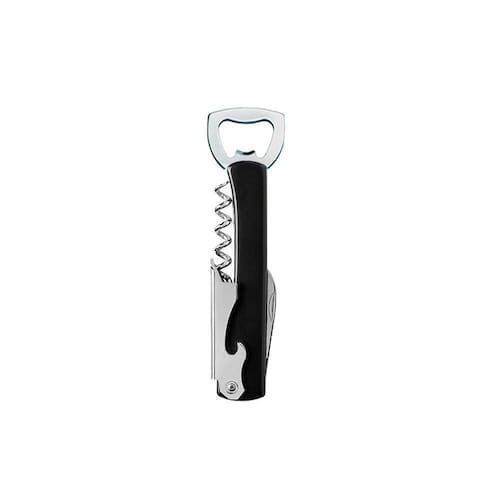Abridor Saca-Rolhas Multiuso Inox Vinho Cerveja e Garrafas Cor: PRETO Nome do Produto: Abridor Saca-Rolhas Multiuso Inox Vinho Cerveja e Garrafas