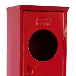 O abrigo para extintor de incêndio 4 a 12kg com pingadeira é indicado para proteger e acomodar extintores em ambientes internos e externos, mantendo o equipamento organizado, visível e acessível em casos de emergência. Ele permite o armazenamento correto de extintores dentro da faixa de peso informada, garantindo encaixe adequado e fácil retirada no momento do uso. A pingadeira integrada ajuda a evitar que a água da chuva escorra diretamente sobre o extintor, contribuindo para a conservação do equipamento e reduzindo o acúmulo de umidade. É uma solução funcional para empresas, comércios, condomínios, estacionamentos e áreas industriais que precisam manter os extintores protegidos, em local padronizado e de acordo com as exigências de segurança. Abrigo Extintor Incêndio fabricada em chapa de aço carbono, com tratamento anti-corrosivo, fundo em primer e pintura de acamento eletroestática e com tinta em pó (epox), na cor vermelho. Porta dotada de trinco, visor para vidro e venezianas de ventilação.
