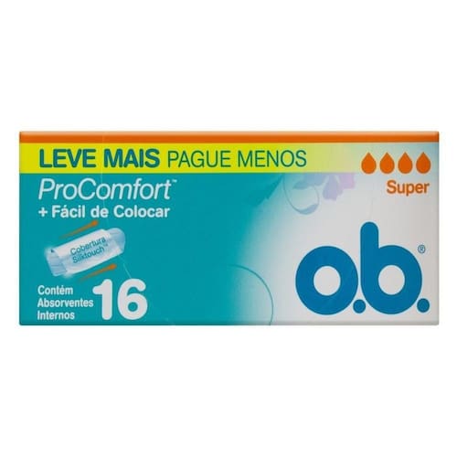 Absorvente O.B Pro Comfort Super Com 16 Unidades O Absorvente O. B Pro Comfort Super promovem comodidade e tranquilidade para a mulher em seu período menstrual, com canais eficientes que direcionam o fluxo menstrual mais efetivamente para dentro do absorvente, oferecem máxima proteção. Sua exclusiva cobertura Silk Touch faz o absorvente deslizar até o ponto ideal e mantém-se no lugar pois se acomoda facilmente. Proporcionando proteção e conforto, deixando você segura e confiante por muito mais tempo. Modo de usar: Retire o invólucro que protege o Absorvente O. B Pro Comfort Super puxando a fita colorida central. Estique o cordão e gire-o para abrir a base do produto em seguida encaixe seu dedo nesta base, leve a ponta de Absorvente O. B Pro Comfort Super até a abertura da vagina e empurre o tampão suave mas firmemente, acompanhando a curva natural do seu corpo usando o comprimento total do seu dedo indicador. Sobre a marca: A Johnson's proporciona cuidado diário que a sua pele precisa para que você viva cada toque. Nossos produtos não cuidam só da sua pele, mas complementam o seu dia a dia com fragrâncias inconfundíveis que prolongam a sensação agradável do banho por todo o dia. A linha de produtos da Johnson & Johnson, foi desenvolvida especialmente para atender as necessidades de toda a sua família. Completa, ela conta com produtos variados, sinônimo de qualidade, tradição e respeito.