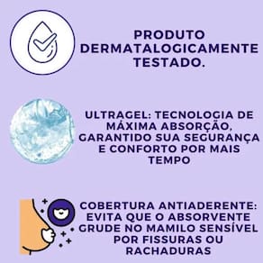 Contém ultra gel para uma maior absorção e canais inteligentes que distribuem o fluxo do leite de maneira uniforme e evitam o acúmulo do líquido no centro.