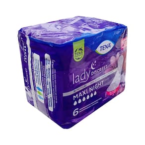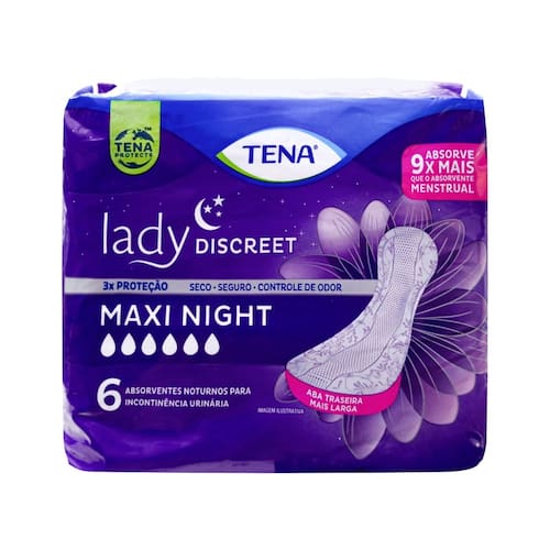 O TENA Lady Discreet Maxi Night é um absorvente noturno pensado para mulheres que precisam de proteção extra enquanto dormem. Com parte traseira mais longa e larga, ele cobre melhor durante o repouso. Possui núcleo superabsorvente que retém a umidade, além de microlágrimas que neutralizam odores. Seu exterior é suave ao toque, respirável, trazendo conforto mesmo em casos de uso prolongado.