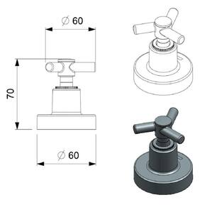 Moderno e dinâmica, apresenta um design harmonioso e compacto, com linhas bem definidas e formas quase geométricas, baseadas em figuras minimalistas que conferem elegância e estilo ao espaço de banho. Formato redondo, volante cruzeta.