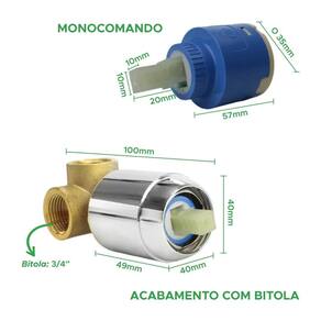 Atenção Medidas do monocomando: Altura e largura do eixo: 1cm 10mm Comprimento do eixo: 2cm 20mm Comprimento do corpo: 5,7cm 57mm Diâmetro do corpo: 3,5cm 35mm