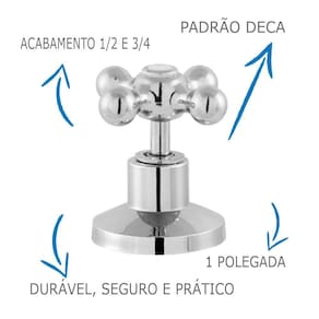 O acabamento para registro 1/2, 3/4, 1 pol. Modelo padrão deca c-52 é desenvolvido com materiais de alta resistência, é uma ótima opção para quem procura um produto de extrema qualidade e durabilidade, com design moderno o torna um excelente acabamento decorativo. Produzido em metal cromado e canopla em abs plástico de engenharia com alta durabilidade , possui alta resistência a riscos e a corrosões, conservando a beleza do produto por muito mais tempo. Deixe o ambiente bonito e elegante, invista neste acabamento e tenha um produto de qualidade.