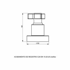 Acabamento Registro Base Fabrimar 1/2' E 3/4' E 1 Pequeno - Likeflex Acabamento leve, prático e moderno. Composição básica: liga de cobre e plásticos de engenharia. Acabamento superficial cromado que proporciona alta resistência à corrosão. Volante metálico em formato de trizeta que facilita a abertura. Fácil instalação. Modelo pequeno: para registros DN15 1/2 , DN20 3/4 e DN25 1 . Modelo maior: para registros DN32 1.1/4 e DN40 1.1/2 .