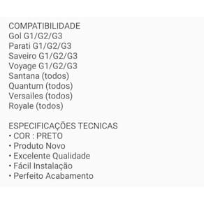 Descrição do produto Acabamento trilho banco externo gol g1 g2 g3 preto direito Mais informações Marca: 5259374 Descrição completa Descrição Acabamento do trilho banco externo direito preto Compatibilidade Gol g1/g2/g3 Parati g1/g2/g3 Saveiro g1/g2/g3 Voyage g1/g2/g3 Santana todos Quantum todos Versailes todos Royale todos Especificações tecnicas Cor : preto Excelente qualidade Fácil instalação Perfeito acabamento Conteúdo da embalagem Trilho - 1 lado direito externo 1 mês Valor unitário Agradecemos a sua visita Marca: 5259374