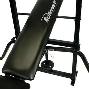 Indicação: Uso residencial Exercícios: Supino Reto e Inclinado, Banco Rosca Scott, Mesa Romana Flexora/Extensora e Crucifixo Estrutura: Tubo quadrado Material: Aço carbono Regulagem de altura: Sim Pintura: Epóxi com dupla camada Marca: Polimet