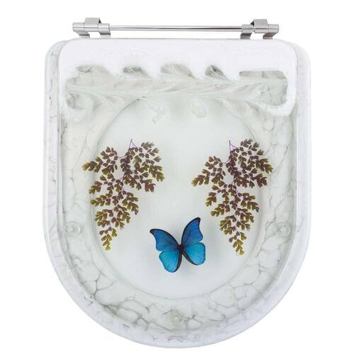 Acento Sanitário Decorado Calypso com Borboleta Azul para Vaso Incepa - Branco