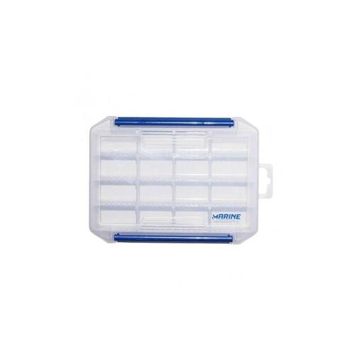 Características: - marca: marine sports. - modelo: mtb205n. - material: plástico. - resistente à água. - cor: transparente com travas azuis. - tamanho: 20,5cm comprimento x 15,5cm largura x 3,5cm altura . - peso: 211g. Marca: Não Informado