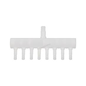 Características: Distribui o ar igualmente para 8 saídas Entrada de ar de 8mm Saídas de ar de 4mm Plástico resistente Fácil instalação