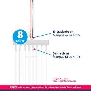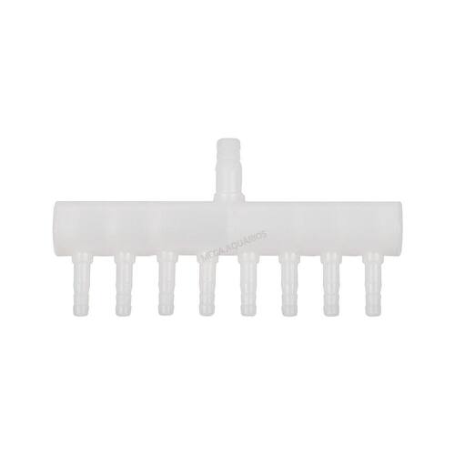 Especificações técnicas: Marca: Aquam Modelo: Divisor ar 8 saídas Entrada: 8mm Saída: 4mm Tamanho: 12,5 x 5,5 cm larg x alt Peso: 17g