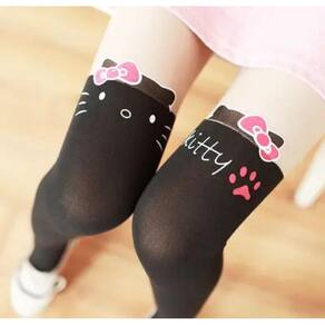 Acessório Cosplay Meia Calça 3D Gatinha Kitty Laços Anime Meia Calça Acessório Cosplay Efeito 3D Gatinha Kitty Laçinhos Anime Preta