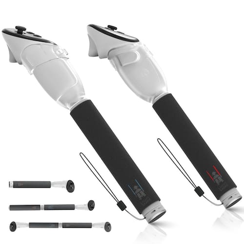 Acessório de aderência estendida Quest 3, 3 formas de alça compatíveis com mais jogos, aumentando a experiência - ?Experiência aprimorada de jogos VR? Acessório de alça de expansão de jogos VR projetado para controle Quest 3. Ao segurá-lo, você terá uma sensação imersiva, tornando o jogo mais real e interessante. Observação: certifique-se de que a fivela da alça esteja travada. - ?3 modos de experiência? Design 3 em 1. Através de simples desmontagem e montagem, você pode obter três tipos diferentes de cabos de extensão de jogo, que podem ser utilizados por adultos e crianças para jogar Gorilla Tag, Beat Saber, Clube de Golf, Beisebol, Sobrenatural. Tenha uma melhor experiência enquanto joga - Fácil de instalar e forte: a alça de expansão adota um design de trava rápida para fácil instalação, e o controle se encaixa e trava firmemente. Também atualizamos o plástico reforçado ABS para fornecer a mais recente estrutura de segurança, que é resistente e durável, e também adiciona proteção dupla com uma corda de pulso, para que você não precise se preocupar, risco de queda - ?Exercício de vinco?Esta é uma boa notícia para entusiastas de fitness de realidade virtual. O comprimento de cada alça é aumentado em 21 cm e o peso é de cerca de 96 g, permitindo que você se exercite melhor durante o jogo. Toda a barra é totalmente envolta com esponja, fácil de segurar, antiderrapante e absorvente de suor, existem diferentes padrões de cores nas duas alças estendidas, fácil de distinguir o controle esquerdo e o controle direito - Conteúdo da embalagem: 2 alças estendidas, 2 peças de elos de controle, 2 cordas de proteção, 1 manual de instruções (sem garantia de versão em português).
