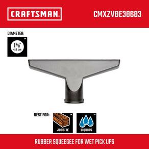 CRAFTSMAN CMXZVBE38683 Acessório de aspirador de pó seco e úmido de 4,5 cm, acessório de aspirador de pó de loja de nível industrial para limpeza de grandes sujeiras líquidas, serve para mangueira de - Projetado para coleta úmida: o bocal largo é perfeito para bagunças grandes e molhadas - Ideal para superfícies duras: o rodo de borracha oferece uma limpeza completa em pisos duros - Estrutura de nível industrial: os acessórios de vácuo CRAFTSMAN úmidos e secos são construídos para lidar com uso pesado - MANOBRÁVEL: 4,5 cm. Os acessórios para aspirador de pó são projetados para uma ótima combinação de manobrabilidade e fluxo de ar - Serve para: CRAFTSMAN e a maioria dos outros aspiradores molhados/secos com 4,5 cm. Diâmetro da mangueira - Componentes incluídos: 1-7/20.3 cm. Bocal molhado