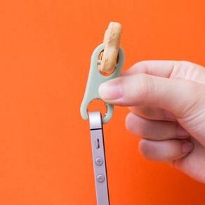Possui dentinhos que ajudam a prender o petisco. Você encaixa a guloseima no acessório, fisga a atenção do pet e garante aquela boa foto com ele olhando diretamente para câmera.