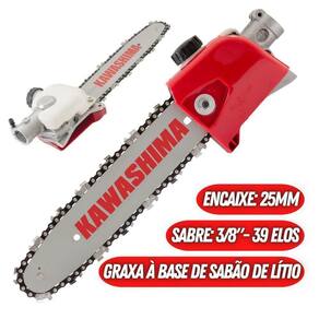 O KW AP-10 da Kawashima é um acessório podador, indicado para uso profissional, desenvolvido para uso agrícola na poda de galhos de árvores em geral. Montado, oferece um alcance incrível, possibilitando a poda de árvores altas em lugares de difícil acesso. Possui sabre de 10" e lubrificação automática da corrente de 3/8" com 39 elos. ;