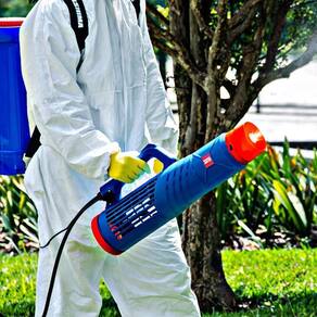 Seu acionamento é feito através de bateria, própria ou acoplada de um pulverizador elétrico, o que permite nebulizações além de áreas externas também em áreas fechadas.