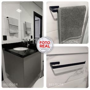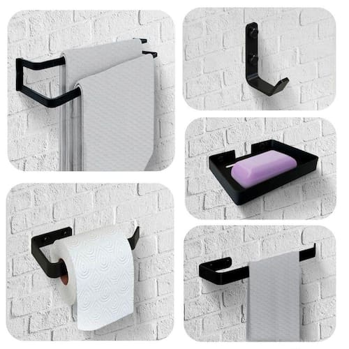 Acessórios para Banheiro 5 Peças Toalheiro Duplo Supremo 60cm Kit 5 Peças Toalheiro Duplo 60cm Pretro Fosco está querendo dar um toque a mais no seu banheiro O Kit 5 Peças Supremo trás organização. seu banheiro terá elegância e designer, te proporcionando comodidade de ter seus itens bem proximo ao alcance de suas maõs. este Kit tem um excelente custo benefício, qualidade e durabilidade, é a escolha ideal para quem quer deixar seu banheiro com elegância e sofisticação. FIXAÇÃO DA PEÇA: A fixação das peças é bem simples, basta parafusar os dois parafusos + buchas entre os buracos de fixação da peça e colocar o acabamento no produto. esse tipo de fixação proporciona uma instalação onde a peça não fique frouxa no local instalado, deixando ainda mais atraente a funcionalidade da peça ficha Técnica: material: Aço / Barra chata 1/8 x 5/8 - 3,2mm pintura: eletrostática Epoxi. cor: Preto Fosco. conteúdo Da Embalagem. 1 Porta Toalhas Duplo Para Banho 60cm 1 Porta tolha De Rosto 1 Porta Papel Higiênico 1 Cabide. 1 Porta Sabonete ótima escolha Para Atender Suas Diferentes Necessidades. Garantia de 3 meses do fabricante. Marca: Belo Lar