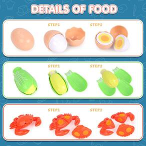 De brinquedos eletrônicos clássicos a brincadeiras de fingir, jogos e brinquedos pré-escolares. Os produtos GILOBABY oferecem uma plataforma de lançamento para que novas gerações de crianças explorem uma infância maravilhosa e alcancem seu potencial máximo, e continuem a proporcionar memórias divertidas e impressionantes para todas as famílias. Garantido pela GILOBABY, elegível para garantia sem preocupações e atendimento ao cliente amigável dentro de 12 meses após o recebimento, se você não estiver satisfeito. - Acessórios abrangentes: os conjuntos de comida lúdica para cozinha infantil incluem panelas e frigideiras coloridas, ovo, repolho, cenoura, pimenta, kiwi, melancia, berinjela, peixe, caranguejo, facas de cozinha de brinquedo e utensílios de cozinha. - Corte e descasque: os acessórios de cozinha fingidos incluem facas de cozinha de brinquedo e tábuas de cortar, para que frutas e vegetais possam ser fatiados. Além disso, o ovo e o milho podem ser descascados, o que proporciona uma experiência realista e diversão sem fim para seus filhos. - Desenvolvimento de habilidades: o conjunto de brinquedos de cozinha para crianças despertará horas de imaginação brincando, desenvolvendo a coordenação olho-mão, habilidades motoras finas, identificação de cores e criatividade, o que é muito útil para sua inteligência e autoconfiança. - Ideias para presentes: se você está procurando um presente educativo e emocionante para aniversário, Natal ou festival, então você vai adorar nosso conjunto de cozinha para crianças. Jogar com a família e os amigos é sempre emocionante e todos se divertem com o GILOBABY. - Segurança infantil e qualidade garantidas: feito de material ABS adequado para crianças, sem BPA, durável e com borda lisa sem rebarbas para proteger as mãos das crianças. Forneceremos uma garantia de 12 meses sem preocupações e um atendimento ao cliente amigável se você não estiver totalmente satisfeito com nossos itens.