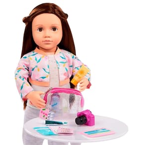 Prepare-se para aventuras incríveis com o kit Acessórios de Viagem Hora de Viajar Our Generation! Ideal para bonecas de 46 cm, esse conjunto vem com itens essenciais para uma viagem dos sonhos: passaporte, passagem, câmera, tablet, bolsa, protetor solar, garrafa dágua, cosméticos, adesivos e muito mais. Tudo armazenado em uma charmosa maletinha verde! Com detalhes realistas e cores vibrantes, é perfeito para estimular a imaginação das crianças e criar histórias de férias, passeios e explorações pelo mundo. Um acessório indispensável para quem ama brincar de viajar com estilo!