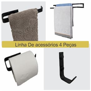 Conteúdo da embalagem. 1 porta toalhas duplo para banho 60cm 1 porta tolha de rosto 1 porta papel higiênico 1 cabide.