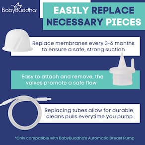 - ACESSÓRIOS OBRIGATÓRIOS: Construído e compatível com a infame bomba de leite sem mãos do BabyBuddha, esses acessórios ajudam sua bomba de amamentação automática a reter conforto e eficiência. Este conjunto de 10 peças inclui 2 diafragmas de silicone, 4 válvulas de bico de pato e conjunto de substituição de tubo de 4 peças.
