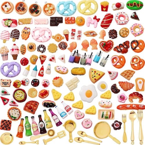 - Quantidade de embalagem: você receberá 122 peças de bebidas em miniatura e acessórios alimentares, como bolo, pão, pãezinhos, hambúrgueres, batatas fritas, bebidas, etc., quantidade suficiente para sua criação criativa, você pode combinar várias sobremesas em sua casa de bonecas ou entreter convidados