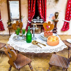- Detalhes e acabamento: os pequenos ornamentos são feitos à mão, pintados à mão com detalhes requintados, a aparência realista pode fazer com que você goste mais de vestir sua casa de bonecas, um material rígido pode ser aplicado para uso a longo prazo